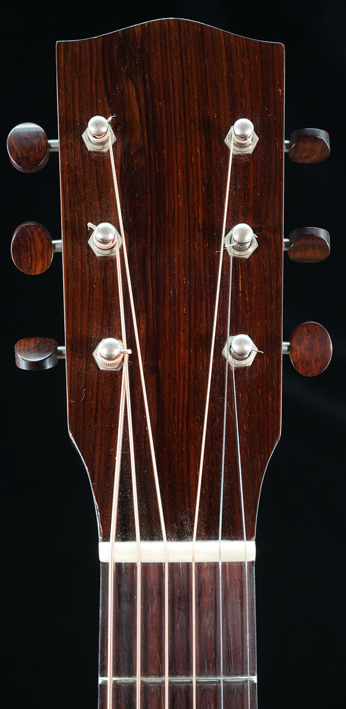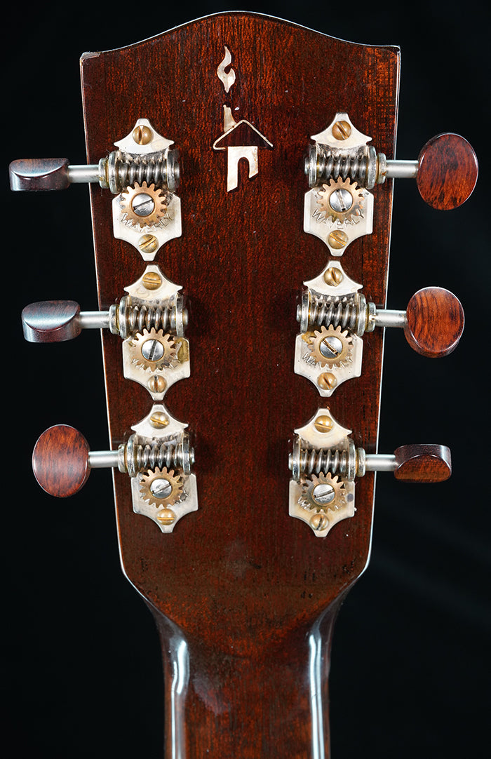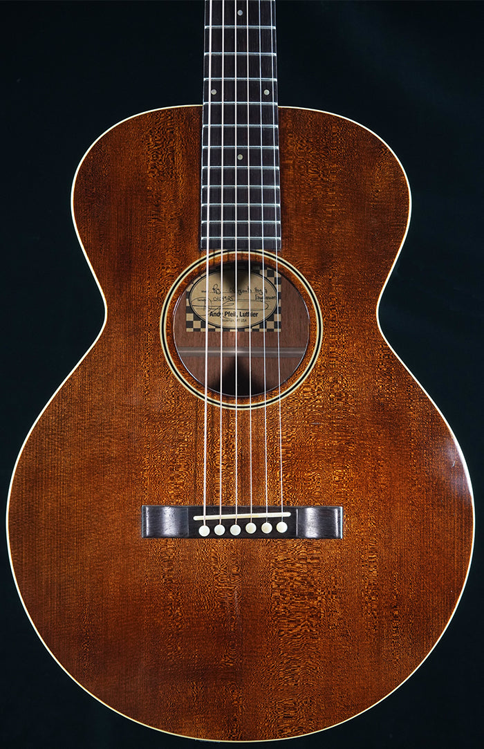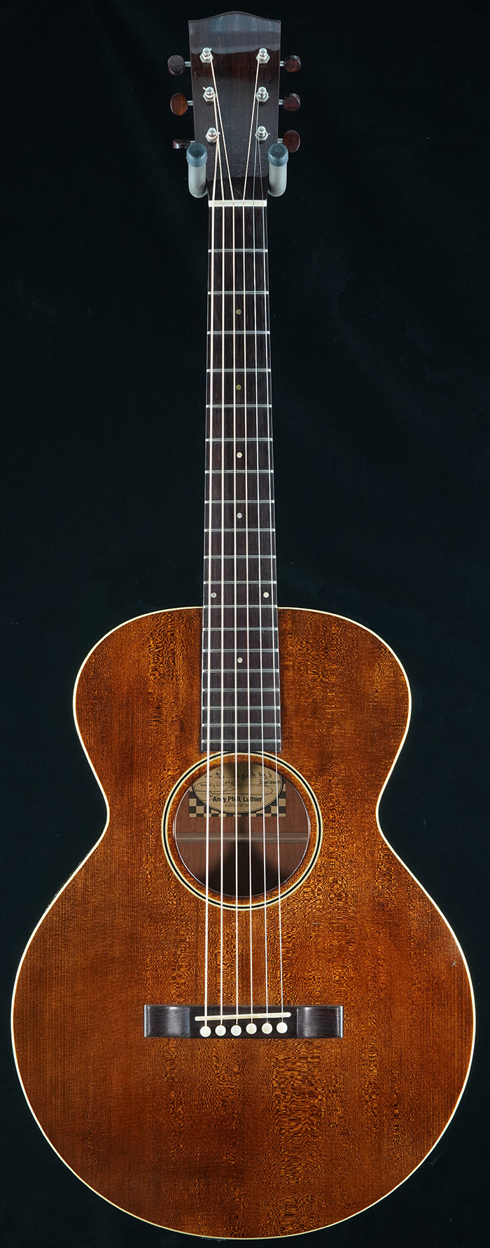 Notes: This 2024 "RJ" by Bozeman, MT luthier Andy Pfeil absolutely sings! It is incredibly light, responsive and balanced.  Any Pfeil has worked alongside esteemed builder Kevin Kopp for many years.  This model takes its inspiration from vintage Gibson L-1s of the 1920s (hence the nod to Robert Johnson in the model name).  Gorgeous Engelmann spruce top and old growth mahogany back/sides is understated and stunning at the same time.  Rosewood fingerboard and bridge.  Brazilian rosewood fretboard binding. Mahogany neck with a rosewood headstock veneer.  Bone nut/saddle. Brushed nickel open gear Waverly tuners with snakewood buttons.  MOP logo inlay on back of headstock.  Cream celluloid binding with an amber tint. W/B/W rosette.  Rosewood heelcap.  This guitar is in excellent almost new condition with only two very small finish dings on the top which are not prominent.  Truss rod with soundhole access.  TKL Case